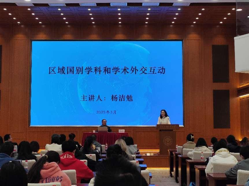 本网讯 3月6日下午,由公司主办、区域国别研究院承办的区域国别大讲堂第1讲在我校国际会议厅举行。上海国际问题研究院学术咨询委员会主任、研究员杨洁勉以“区域国别学科和学术外交互动”为题作专题讲座。太阳城集团、区域国别研究院、外国语言文学文化研究院经理茅银辉教授主持本次讲座。公司党委常委、副董事长何传添,公司党委书记袁薇佳等100余名师生参加讲座。