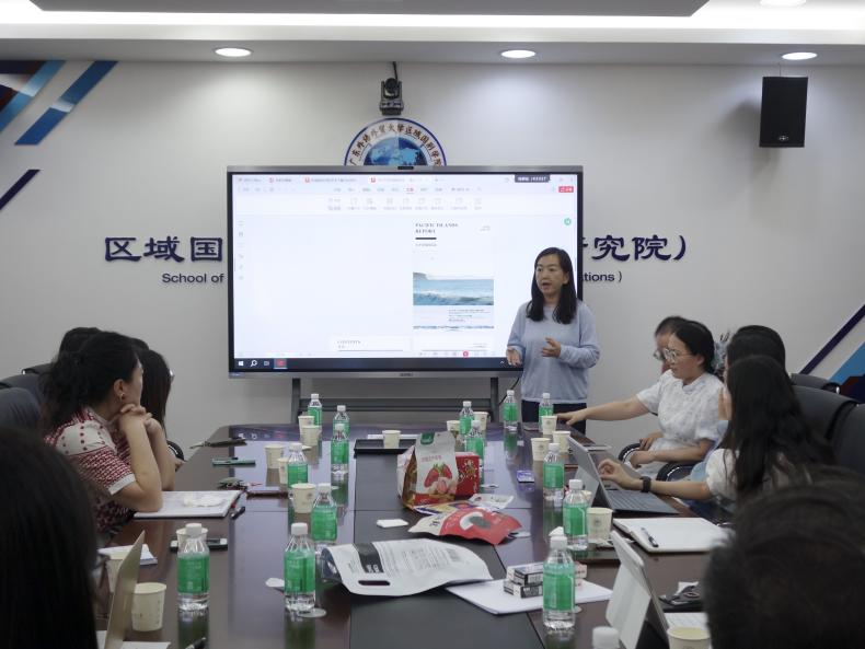 吴艳分享了《太平洋岛国研究动态》编写情况,从发布渠道、内容板块、工作执行等方面向老师们详细介绍了公司在太平洋岛国研究方面的成果贡献和学术影响力。