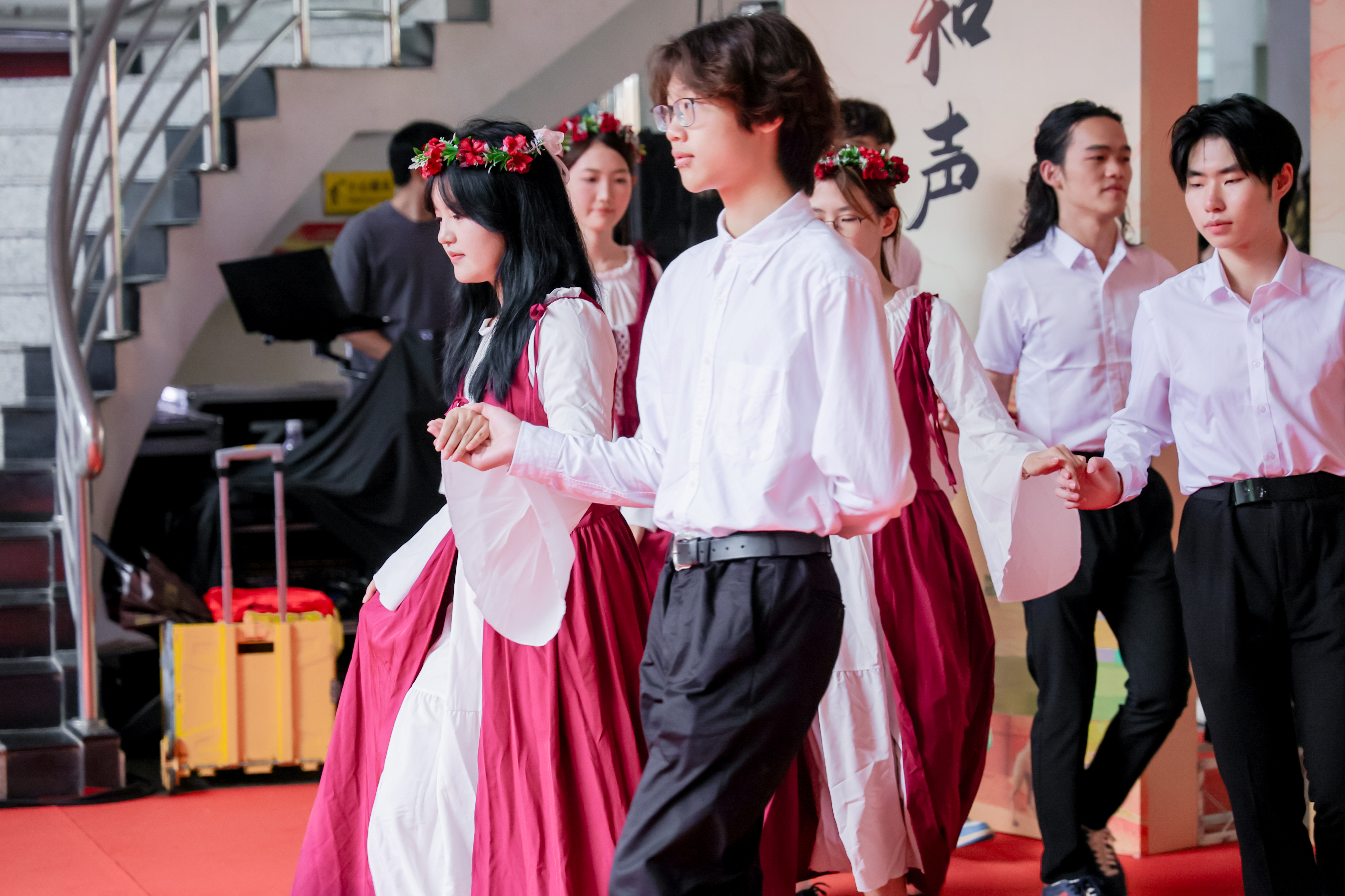 校合唱团与器乐队以创新编曲演绎古老民歌——《越人歌》,悠扬旋律引领观众穿越时空,感受华夏文明的悠远底蕴。