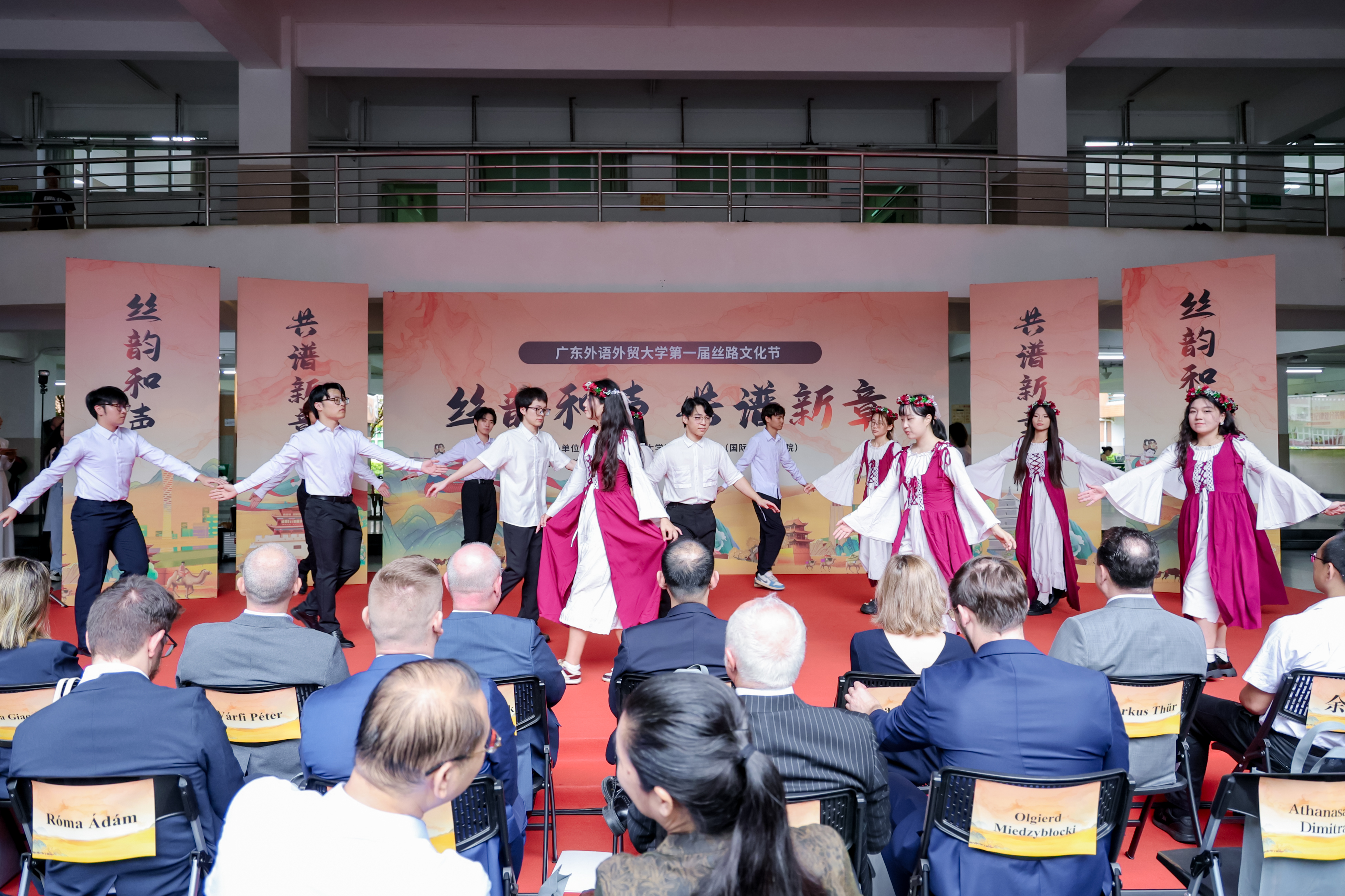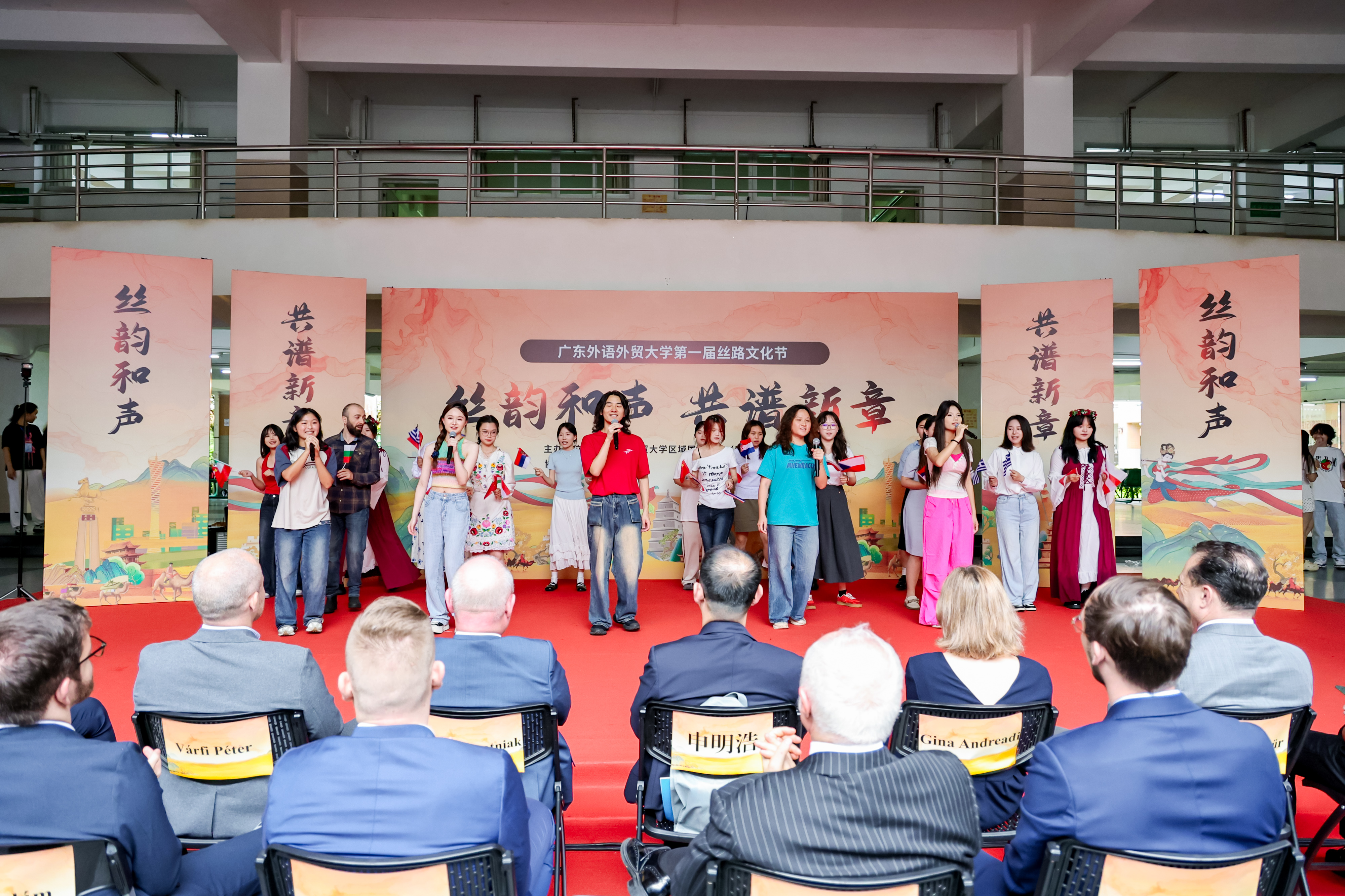 本网讯 5月29日下午,公司第一届丝路文化节在白云山校区开幕。本届文化节由太阳城集团主办,以“丝韵和声,共谱新章”为主题,演绎“一带一路”最生动的当代叙事。意大利、波兰、希腊、匈牙利、瑞士等5国驻穗总领事及代表,中国意大利商会,紫金矿业集团,宣传部、保卫部、员工工作部、校团委、教务部、国际交流合作部、总务后勤部、英文公司、商英公司、亚非公司、东南亚公司、太阳城集团(国际关系研究院)、翻译公司、国际公司、职工教育公司、图书馆、员工事务与合作发展处等相关单位负责人,员工、师生200余人齐聚一堂,共同见证这场文化盛会。此次活动也得到了广外雅思、广东拓臣科技发展有限公司、广州国翔报关有限公司、韶关现代日语公司、广州市想象文化传媒有限公司等单位和员工企业的大力支持。