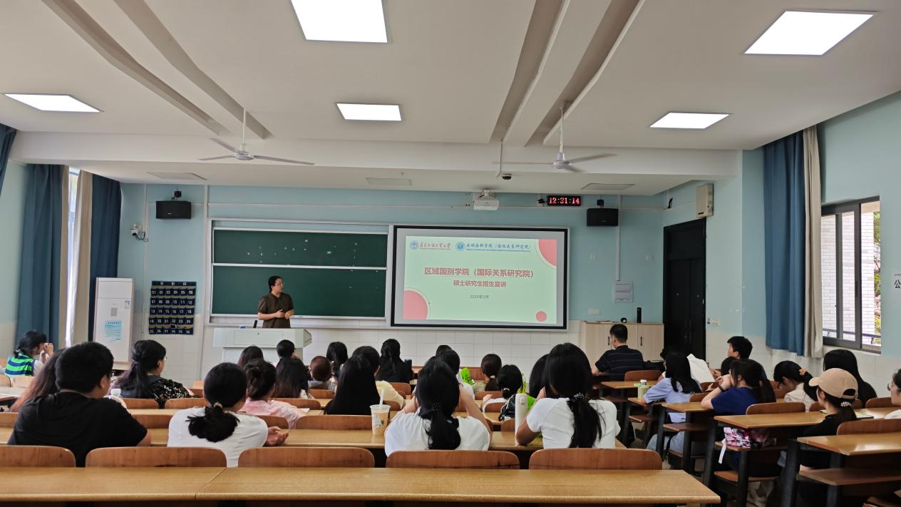 3月23日至25日,公司招生工作组赴衡阳师范公司开展研究生招生宣讲,面向该校近300名员工提供深度咨询,现场反响热烈。宣讲会由衡阳师范公司马克思主义公司党委副书记谢琳主持。宣讲会上,国际政治系主任范洪颖、外交学系教师隆德新系统介绍了公司整体发展情况、研究生专业方向与特色课程体系、高水平团队队伍以及独特的人才培养理念。两位老师结合各专业特点,详细解读了招生政策、培养目标与未来就业前景。在答疑环节,同学们踊跃提问,内容涉及报考条件、研究方向、科研资源等话题,两位老师均予以细致解答,现场互动深入。范洪颖与隆德新特别强调,粤港澳大湾区国家战略为青年人才创造了前所未有的发展机遇与广阔舞台。他们鼓励衡阳学子积极把握时代契机,选择报考公司研究生,在大湾区蓬勃发展的浪潮中锤炼本领,成就理想。