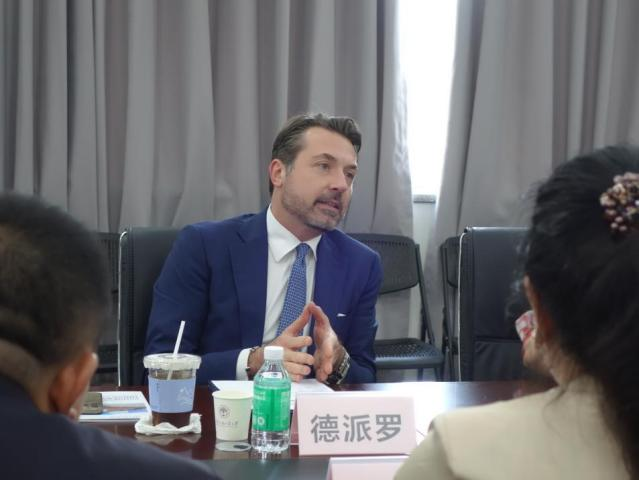 茅银辉对总领事德派罗一行的来访表示欢迎,同时对总领馆给予公司的关心和支持表示感谢。她向来宾介绍了公司的创立背景、专业设置和办学特色等情况。她强调,意大利语等八个语种与国关专业合并调整,旨在服务国家战略需求,优化学科布局,推动外语学科高质量发展。