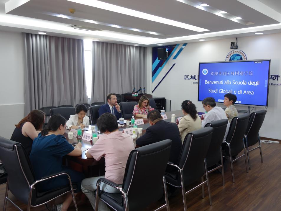 本网讯 6月10日下午,意大利驻广州总领事馆代表一行来访公司,公司经理茅银辉、副经理臧宇及意大利语系全体教师出席会议。双方围绕意大利语系学科建设、外语专业转型、区域国别学团队建设等议题进行了深入交流。