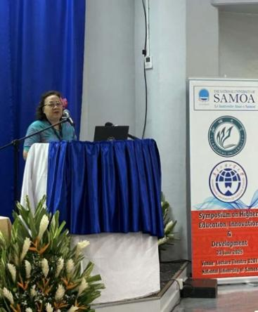 萨摩亚国立大学董事长帕蒂拉·阿莫萨主持开幕式