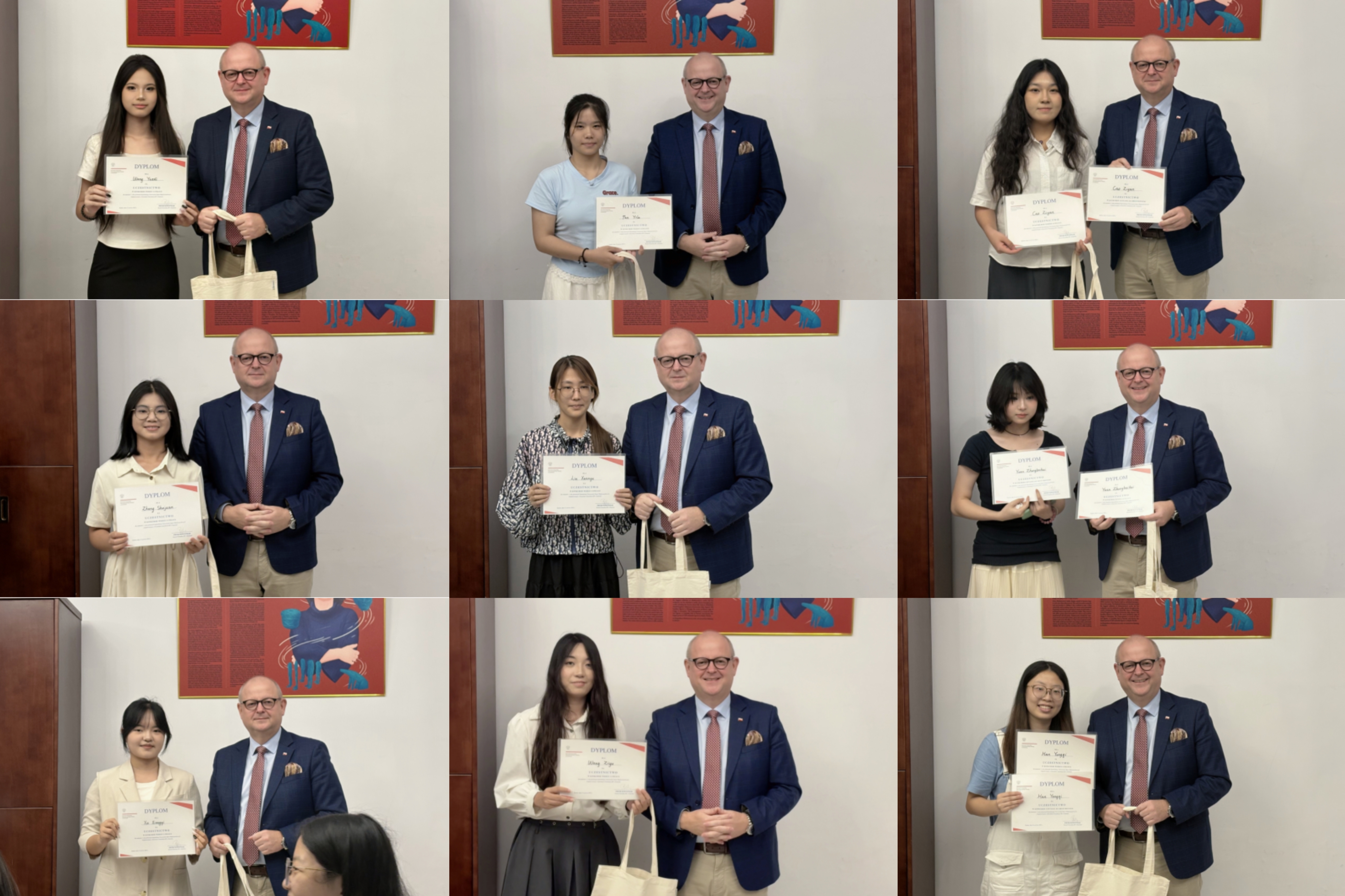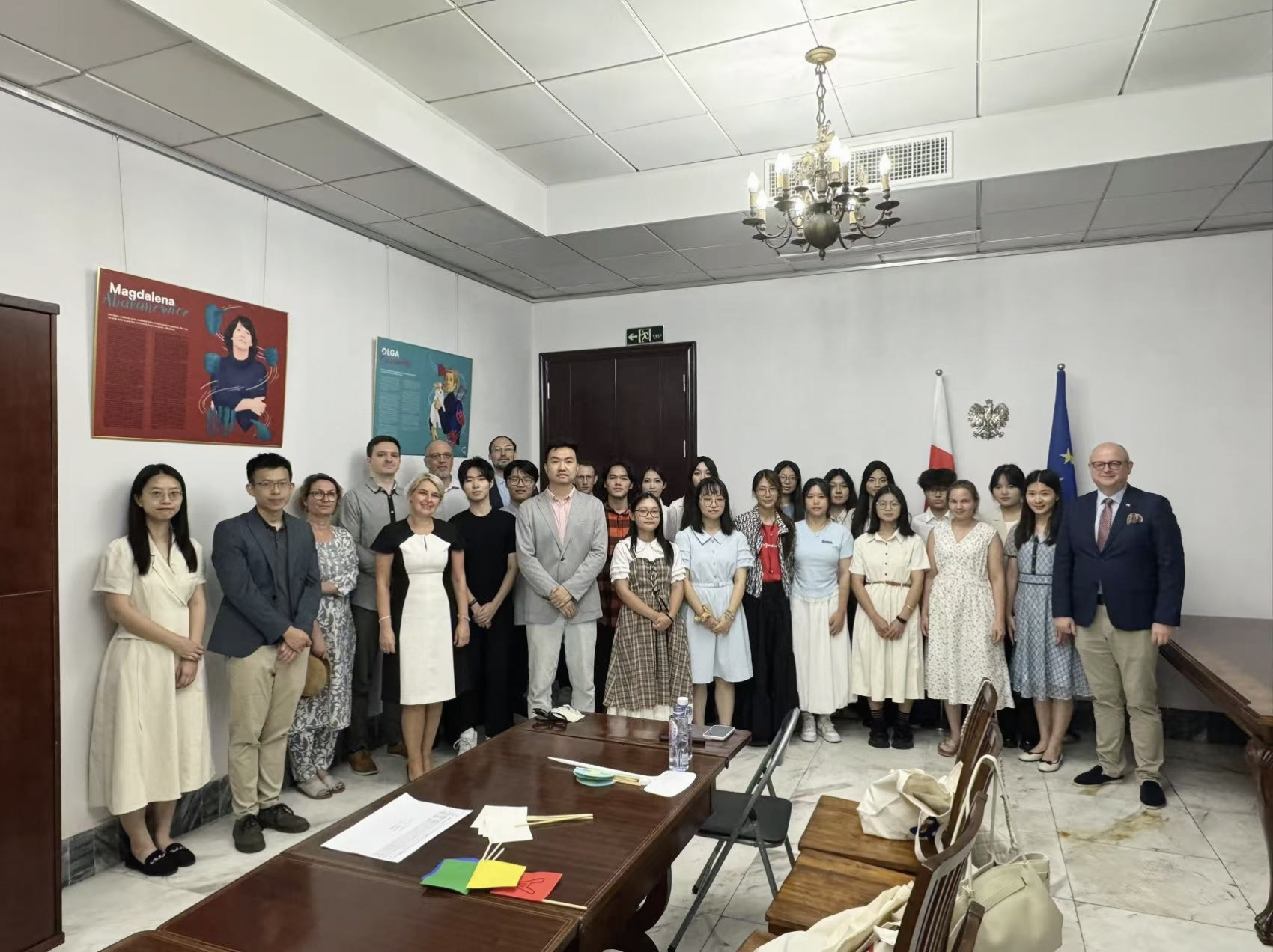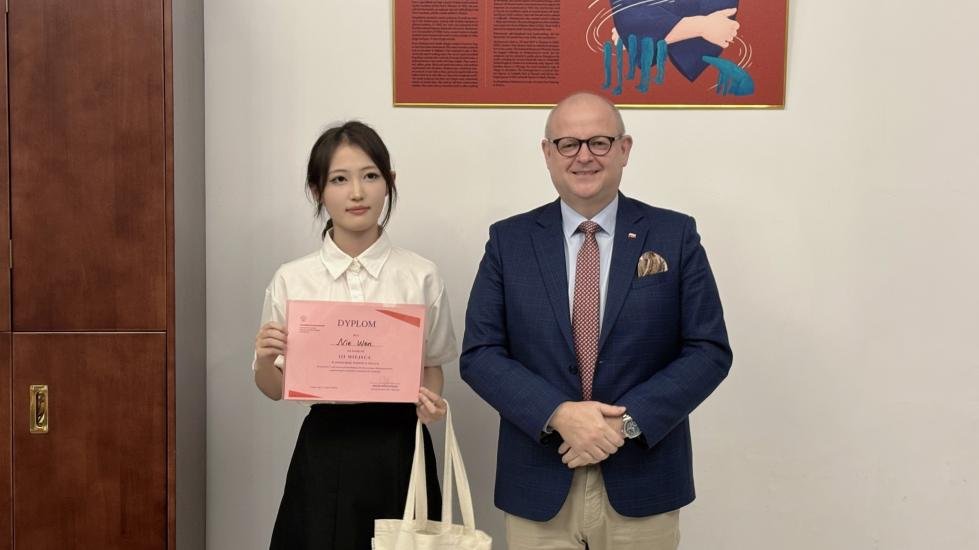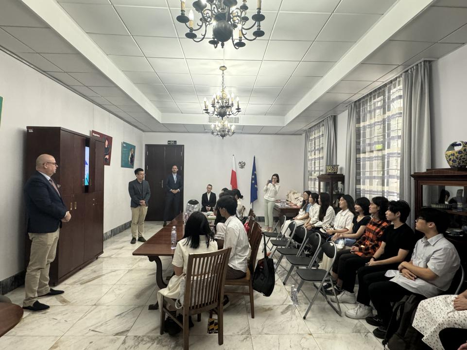本网讯 6月12日,公司波兰语系师生应邀赴波兰共和国驻广州总领事馆参加波兰国情知识竞答及品尝特色烧烤美食活动。波兰语系主任林歆老师、专任教师梁小聪和张和轩,外教马一鸣(Mateusz Kwiatkowski)和雷娜塔·锡根(Renata Siegień),以及大一、大二员工参与活动。