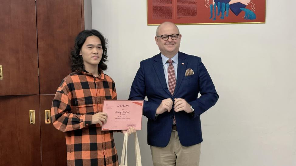 活动伊始,波兰驻广州总领事彼得•诺沃特尼亚克(Piotr Nowotniak)先生代表领事馆全体人员对大家的到来表示热烈欢迎。他与我系师生逐一握手问候互动,对公司波兰语系主办本次波兰国情知识竞赛予以支持和肯定。接着,林歆老师对领馆协办此次比赛表示感谢,并对向选手和现场观众介绍竞赛规则。本次比赛分为三个环节:大一知识竞赛、大二知识竞赛,以及大二文学经典阅读理解竞赛。前两轮围绕波兰国情知识展开,根据大一大二不同水平设置难度梯度;第三轮,大二同学以亨利克·显克维奇短篇小说《小音乐迷杨科》(Janko Muzykant)为文本,进行深度阅读理解竞答。第一、二轮选手们需要在30分钟内抢答完成60道题目,第二轮需要在5分钟时间内抢答完成10道阅读选择题,如果出现同分还需要进行加赛。