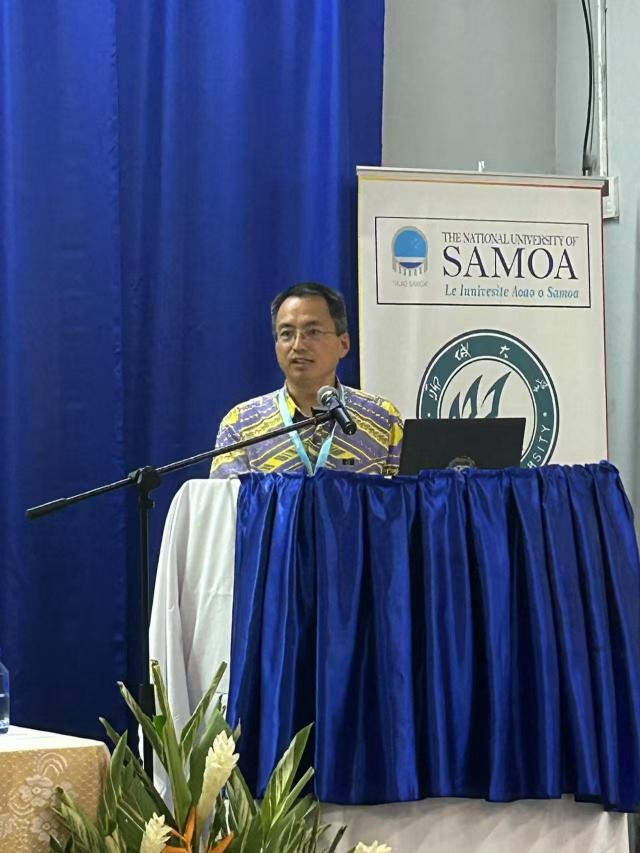 本网讯 当地时间2025年6月24日,“2025携手太平洋岛国应对气候变化对话会”在萨摩亚首都阿皮亚举行。会议由中国-太平洋岛国应对气候合作中心、萨摩亚国立大学和聊城大学共同举办。会议由萨摩亚大学副董事长李航˙派塞塔主持,来自太平洋岛国、中国高校、研究机构等20多家单位近百名学者参加会议。中国政府太平洋岛国事务特使钱波为大会做视频致辞,中国驻萨摩亚大使费明星出席会议并作主题发言,公司副经理、太平洋岛国战略研究中心副主任吴艳参加会议。