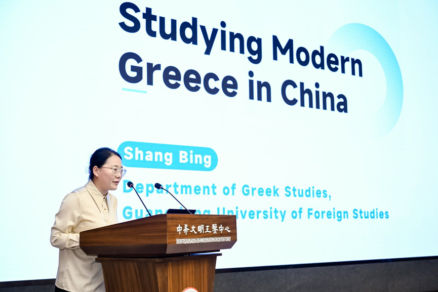 在“全球视野下的现代希腊研究”平行论坛上,尚冰以题为《中国的当代希腊研究》作主旨报告。她首先梳理了中国当代希腊研究的热点议题以及相关研究机构的基本情况。接下来,她以公司希腊语系为例,阐述了希腊语系教师团队依托广外中东欧研究中心和国际移民研究中心所取得的科研成果,并介绍了在外语学科区域国别研究转向的背景下,该系人才培养模式的改革进展。她指出,随着区域国别学在中国成为“显学”,中国的当代希腊研究迎来了全新的发展机遇,这为中希两大文明之间的交流互鉴开辟了更广阔的空间。在随后的圆桌交流环节中,与会学者就“如何加强对现代希腊的研究”这一议题展开了进一步讨论。