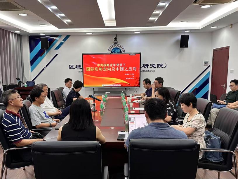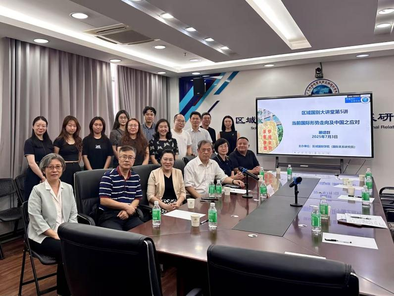 本网讯 7月3日下午,公司在白云山校区举办区域国别大讲堂第5讲学术活动。本次讲座特邀原中国国际问题研究院美国研究所所长、央视特约评论员滕建群教授担任主讲,经理茅银辉,副经理吴艳、臧宇,省社科院国际所郑崴文,以及公司英文公司、翻译公司等师生代表参加讲座。