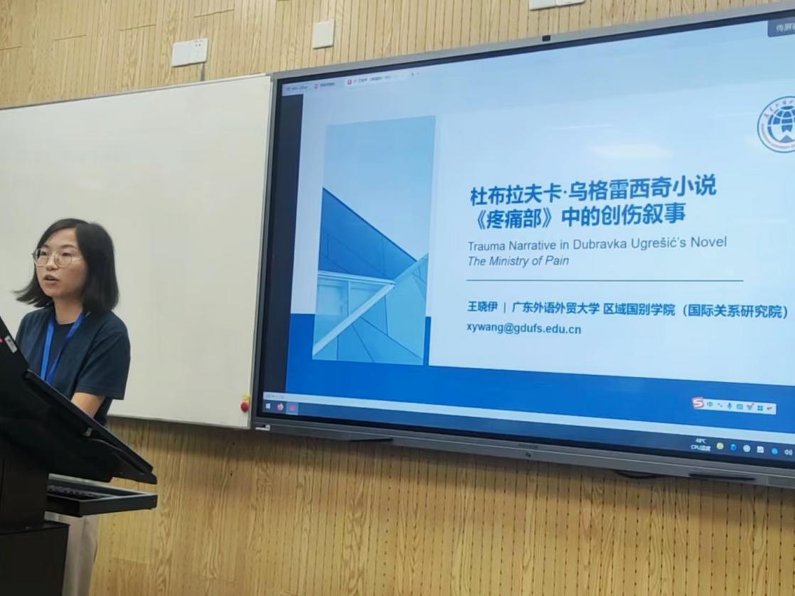 在“欧洲文学研究与翻译”分论坛上,王晓伊围绕《杜布拉夫卡·乌格雷西奇小说〈疼痛部〉中的创伤叙事》一题展开发言,结合叙事学理论和创伤理论,分析了小说中多为创伤主题的构建方式和叙述策略,以及文本在心理修复、历史批判和文化重构中的功能指向,展现出创伤叙事在当代欧洲文学中的重要意义。