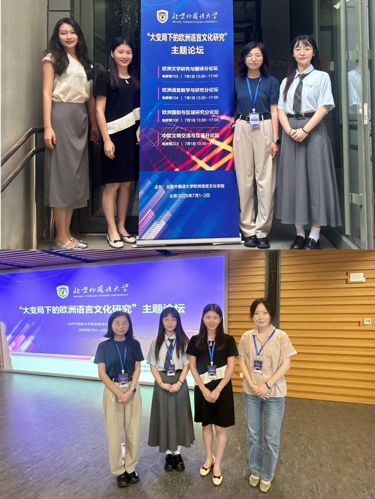 本网讯 7月1日至2日,大变局下的欧洲语言文化研究主题论坛(2025)在北京外国语大学召开。此次会议设有“欧洲文学研究与翻译”、“欧洲语言教学与研究”、“欧洲国别与区域研究”和“中欧文明交流与互鉴”四个分论坛,旨在共同探讨大变局下欧洲语言文化研究的现状及未来发展趋势,进一步推动中欧人文交流与合作。公司捷克语系主任蔡洪召,匈牙利语专业负责人王梦圆,波兰语系教师梁小聪,塞尔维亚语(克罗地亚语)系教师马曼露和王晓伊参加论坛并发言。