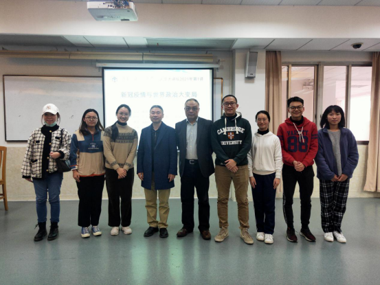 本网讯 1月6日下午,集团2021年人文大讲坛第1讲暨国关大讲堂第23讲在南校区教学楼D312举行。中国南海研究协同创新中心执行主任、南京大学国际关系研究院经理朱锋教授作题为“新冠疫情与世界政治大变局”的分享。本次讲座由党委宣传部主办,国际关系公司承办。讲座由国际关系公司经理周方银主持。