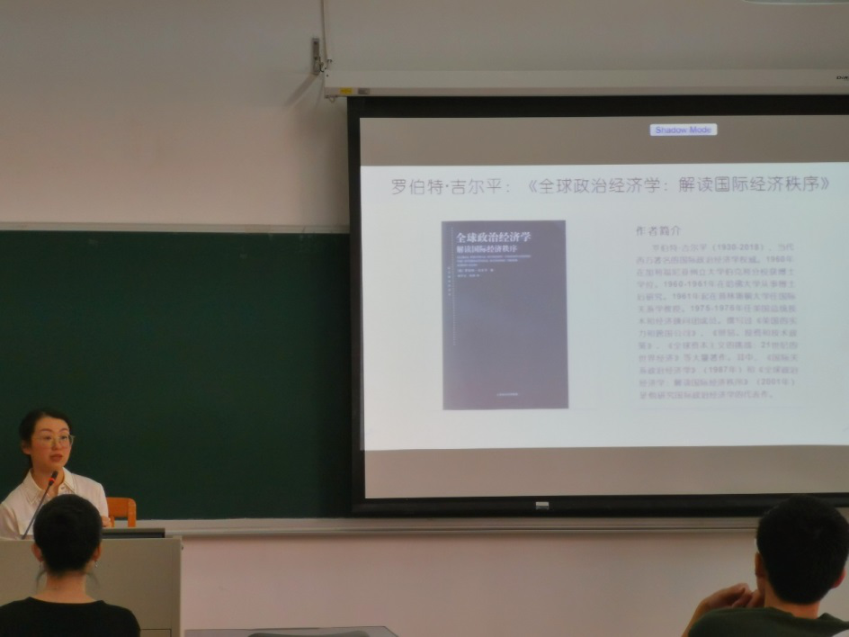 本网讯 11月26日下午,国际关系公司第九期读书会在教学楼D110顺利举行,参与人员以青马班第三期学员为主。此次读书会由王璐瑶老师主持,分享的内容为罗伯特•吉尔平所著《全球政治经济学:解读国际经济秩序》一书。