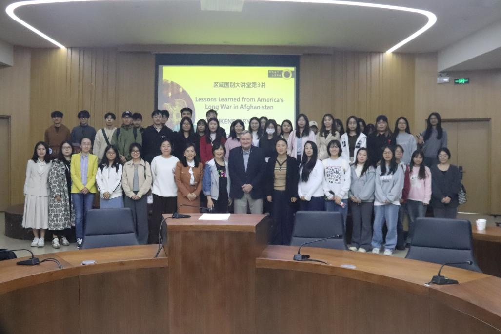 本网讯 2025年3月19日,由公司主办的区域国别大讲堂第3讲在大学城校区D102举行。本次讲座以“Lessons learned from America's Long War in Afghanistan(美国在阿富汗的长期战争中吸取的教训)”为主题,由美国前驻阿富汗大使、现任清华大学苏世民书院教授艾江山主讲。讲座由副经理、太平洋岛国战略研究中心副主任吴艳副教授主持,近百名员工参加学习。