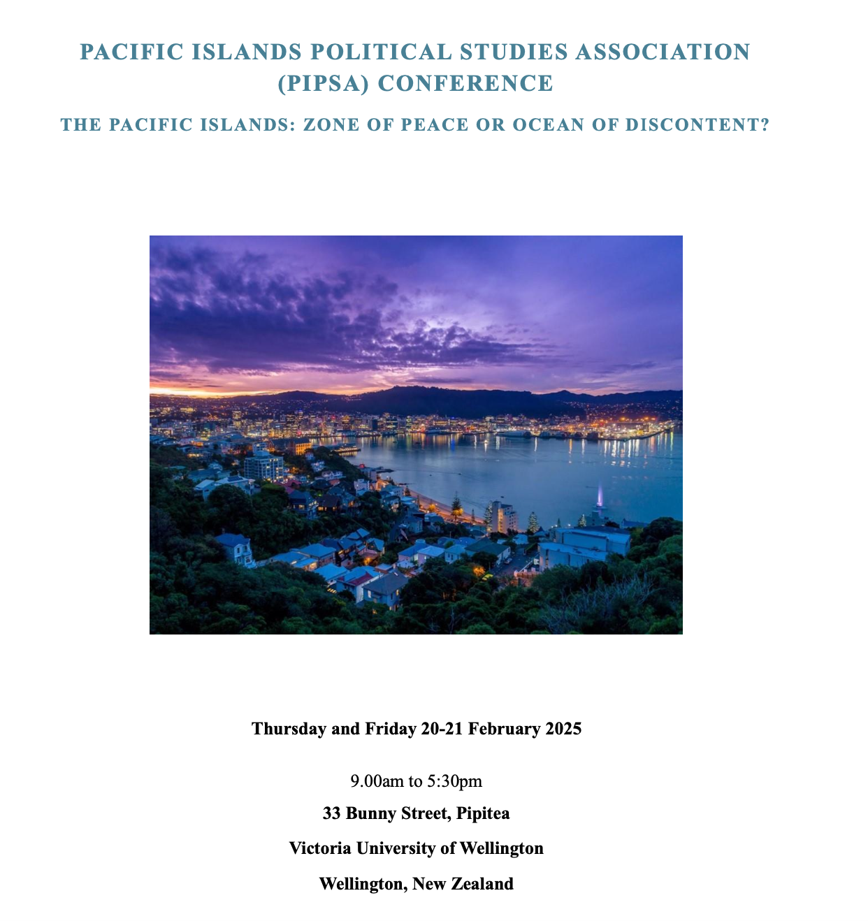 本网讯 2025年2月19日至21日,公司副经理、太平洋岛国战略研究中心副主任吴艳副教授受邀前往新西兰惠灵顿,参加太平洋岛国政治研究学会国际会议(Pacific Islands Political Studies Association Conference)并做主题发言。